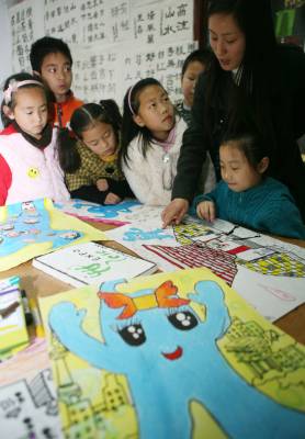 4月12日,湖北襄樊学院少儿美术研究基地,组织小学生开展”世博在我心中”为主题的绘画创作比赛活动,同学们用手中画笔,憧憬世博会宏大场景和空前盛况,喜迎即将在上海开幕第41届世界博览会。