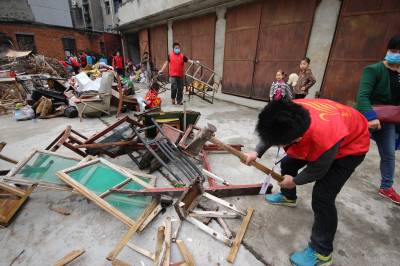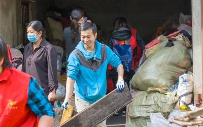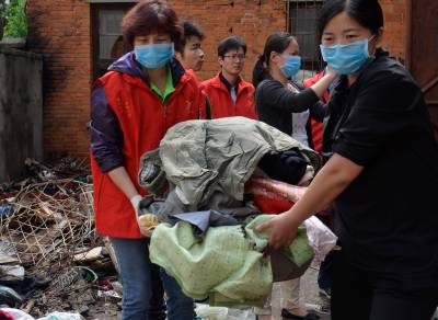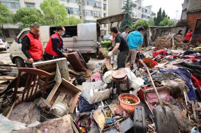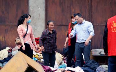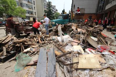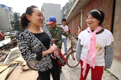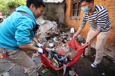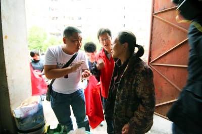 5月11日,义工们为孝感市三里社区困难家庭张子园母女二人清理门前的废品和垃圾。张婆婆今年60多岁了,她30多岁的女儿患有精神分裂症,母女俩靠低保和拾荒度日。当日,孝感市义工联组织了20多名义工开展邻里守望“母亲节”温暖社区贫困母亲活动,帮她们家清理了满满20多车垃圾,给她们母女俩漏雨的房子换了石棉瓦,并找爱心人士为她们家捐赠了衣柜、方桌、碗柜及蔬菜、水果等日用品,让她们母女俩感受到社会大家庭的温暖,过了一个别样的“母亲节”。 王云清 摄