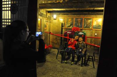 吊脚楼里忆峥嵘岁月 在湖北省恩施土家族苗族自治州恩施女儿城里,部分景点按照解放初到改革开放时期的格调进行布置,让游客在参观土家文化的同时,重温那段消逝的时光。 谢顺 摄