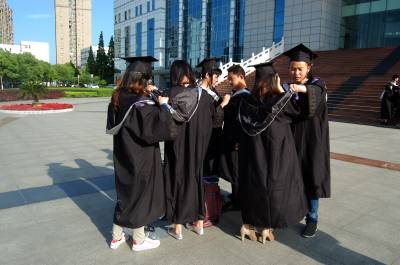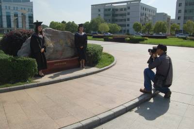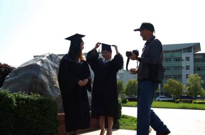 2014年5月11日,即将毕业的湖北工程学院学子在蓝天白云下拍照留念。一年一度毕业季,莘莘学子青春飞扬。