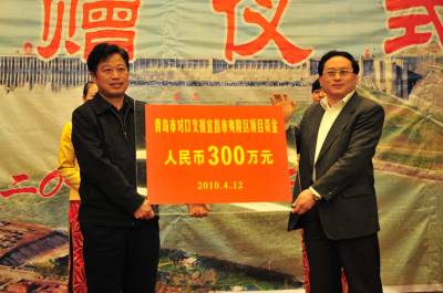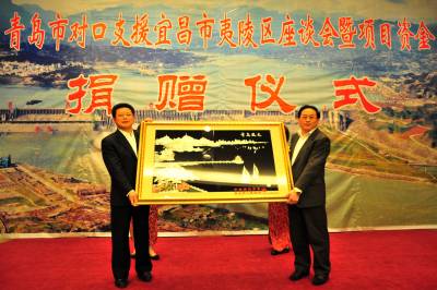 2010年4月12日,青岛市委副书记、市长夏耕率青岛市政府代表团到湖北省宜昌市考察,并举行青岛市对口支援宜昌市夷陵区座谈会暨对口支援项目资金捐赠仪式。 宜昌市夷陵区地处三峡工程所在地。自1992年以来,青岛市对口支援宜昌市夷陵区以来,累计落实对口支援资金1.066亿元,其中无偿援助资金2726万元,援建项目107个,安置移民就业近千人。下一步,青岛市将推动生态环保型产业、企业向宜昌转移,大力支持夷陵区发展农产品深加工和劳动密集型产业,在夷陵区建百亿元青岛工业园区,推动两地在旅游资源开发,教育、医疗卫生、文化、体育等社会事业发展方面进一步加强合作。视界网签约摄影师张国荣摄
