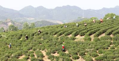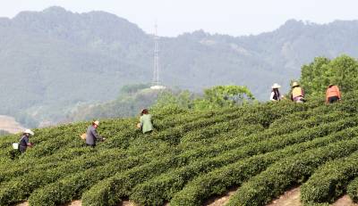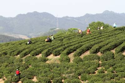 抢采夏茶 5月11日,采摘工在竹溪县蒋家堰镇茶园采摘夏茶。立夏后,湖北省竹溪县各茶园积极组织人力对夏茶进行采摘,促进茶农增收。据悉,该县有茶园22.4万亩,投产茶园13万亩,截至目前,已实现春茶产量780余万斤,产值7.5亿余元,同比增长10%。