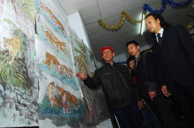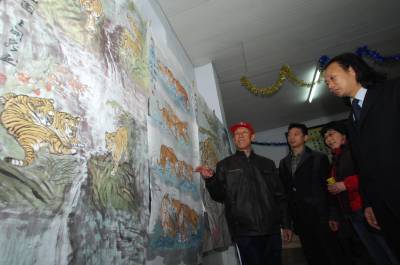 > 古稀老人画百虎图为世博会喝彩