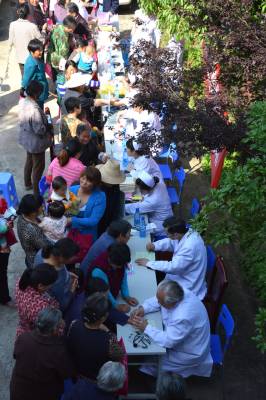 义诊活动中,来自外科、内科及名老中医们仔细为患者诊断、排疑解难。护士们也认真为村民义务测量血压、血糖,提供医护、用药咨询。义诊小组还向广大就诊的村民广泛宣传和普及防病知识和卫生常识,指导他们养成良好健康的生活习惯。持续了三个小时的义诊活动,共接诊、接待咨询二百余人,并发放医院印制的健康知识图片、资料、健康教育等宣传材料五百余份。