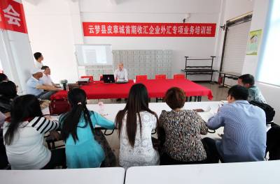 5月13日,云梦县人民银行工作人员在当地皮草城产业园举办外汇知识培训,现场回答企业财务人员的疑问。该产业园是云梦县去年以来通过亲情招商、以商引商引进在京的外贸出口企业,目前已发展到44家公司,形成皮草产业集群。会计都是新招录的,对外汇业务不熟悉。过去,他们都没有专职的外汇出口业务会计,每笔出口业务都需要皮草城总公司代理,涉及企业多,经常影响办事进度和出口效率。云梦县人民银行在群众路线教育实践活动中了解到此情况后,主动邀请国家外汇管理局孝感市中心支局专业人士深入皮草产业园,面对面地向企业负责人及财务人员讲解货物贸易外汇管理指引、操作规程及现场核查等相关外汇业务知识。