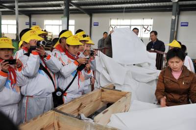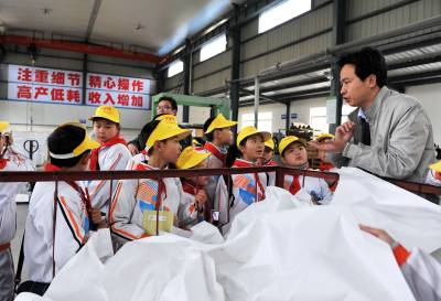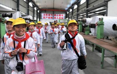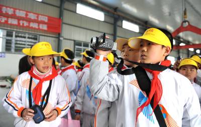 小学生们正用照相机、录像机和手机实录造纸企业生产工艺流程。2010年4月13日上午,湖北省南漳县实验小学的学生们开展”走进低碳”——华海之行观摩实践活动。学生们通过实地观摩了整个造纸工艺流程后,深感节约每一张纸的重要性。他们表示从我做起节约张纸,做低碳消费的模范。