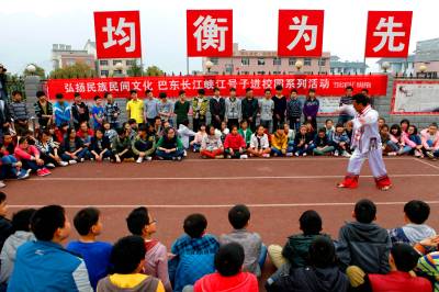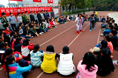 三峡库区巴东县官渡口镇是湖北“长江峡江号子传承保护基地”,是长江水系音乐的重要组成部分,2008年入选为国家级非物质文化遗产保护名录,曾多次应邀赴北京 、上海、浙江、贵州、武汉等地表演和学术交流,已成为享誉全国的知名文化品牌。巴东县文化馆通过项目申报加大政府支持、带动社会投入等系列举措,在培养专业传承艺术大师的同时,积极开展民俗传承文化进校园活动,将“长江峡江号子”与学校的体育课、民俗文化课结合起来,通过艺术大师面对面的演示和一对一的辅导,让学生们零距离感触民间民俗文化渊源,使他们真正掌握传承技艺,真切感受家乡传统文化的魅力。本报视界网:梁斌 摄(地址:巴东县委宣传部 电话:13343557688)