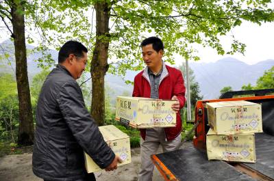 免费送药助果农春管 5月15日,在恩施市红土乡龙角坝村核桃生产基地,林业技术员正在送药上门抓春管。 连日来,该乡紧紧抓住春季果树管理的有利时机,组织技术员进村入户,对当年新发展的1000亩核桃树,连片的进行了一次集中春管。为核桃开展涂干、施肥、高位修枝定型,抹芽松绑、防病治虫等丰产培育措施,所需物资由林业站免费提供,全乡掀起了核桃树春管热潮。(本报视界网彭绍峰谭风华摄)