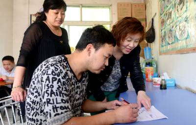 2014年5月15日,黄石市西塞山区陈家湾社区兰州拉面馆老板正在填写计生干部发放的2014年全国流动人口卫生计生动态监测调查问卷。