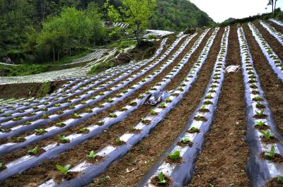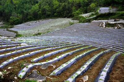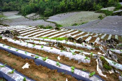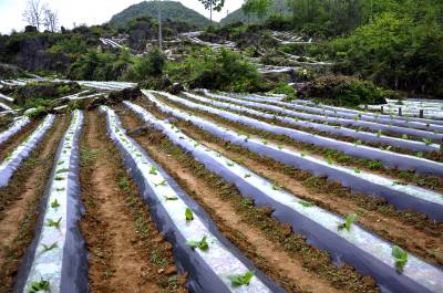 岩壳里长“黄金” 5月15日,在恩施市红土乡石灰窑村,满山遍野铺上地膜,种高产蔬菜,增收的烟叶。 近几年来,该乡石灰窑等二高山村组平均海拔1700余米,全年无霜期仅6个月。采用地膜覆盖技术种植烟叶、蔬菜等经济作物,让岩壳地里长出“黄金”,已成为山区农民一项主要的经济来源。(本报视界网彭绍峰摄)