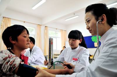 湖北十堰:书香满园春意浓 樱满枝头花正好 校园为民众开放赏花