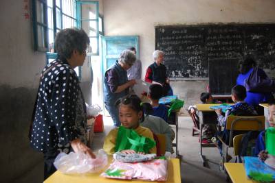 老教师们不顾舟车劳顿,关切询问该小学的9名学生生活和学习情况,现场向每位孩子赠送了价值1000多元的衣服帽子、书包文具、营养食品等物资,并将协会一位九十高龄老教师捐资的600元送到贫困姐弟雷成发、雷成旭手中。在看到简陋的教学设施设备后,该协会又当即承诺捐款1000元改善办学条件。