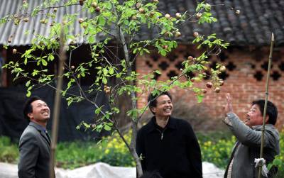 栎树结异果农民称稀奇12日,随县三里岗三星村农民陈绪芬发现的一棵结异果的栎树引得众多村民前来观看。该栎树高约3米,直径5厘米,结了200多颗乒乓球大小的”桃子”,年长的村民称,他们活了大半辈子也是第一次看见这种景观。有关林业专家正对这种现象进行研究。随州日报孙洪涛摄