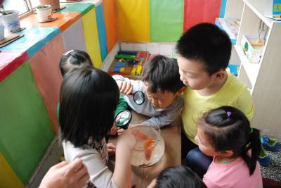 5月20日上午,来凤县民族幼儿园大班孩子在“美食美家”玩烹饪美食游戏,中班孩子在科学区观察动物标本和金鱼,孩子们稚嫩的脸上洋溢着惊喜、天真和好奇。