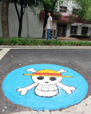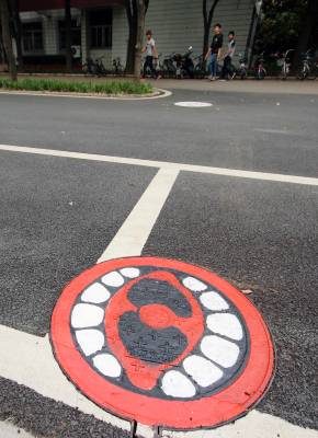 5日20日,笔者在湖北工程学院学校及附近地面发现一些卡通画,有笑着的“叮当猫”、可爱的“阿狸”和“小羊”、露着牙齿的“卡通嘴”、动漫的标志等卡通图案,同学们都说:“酷炫!萌翻了!”据悉,这是该院涂鸦爱好者自发组织的公益活动,旨在让光秃秃的井盖多些色彩。