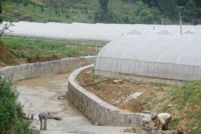 回乡创业的巴东县官渡口镇青年周黎、胡刚夫妇在当地党委政府和农业主管部门的帮扶下 ,成立湖北富隆富硒生态农业旅游开发公司,于去年下半年在该镇沙坪村和茅坝村已建成100个大棚 。夏季来临,适逢暴雨的多发期。为确保大棚和农作物不受损失,该公司积极应对。