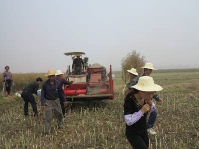 2、5月20日,安陆市辛榨乡5名青年干部为西河村民张礼耀请来收割机,帮助他收割今年的油菜。
