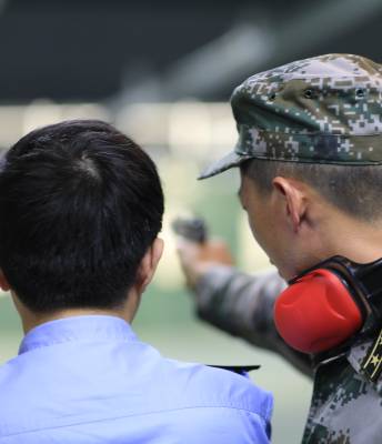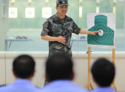 5月21日上午,武汉市江夏区金港派出所民警到辖区部队向军营神枪手学习射击技术,苦练射击本领。
