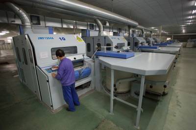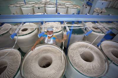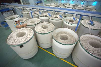 5月22日,咸宁市咸安区凤凰工业园天源纺织有限公司内,工人在天成麻纺车间忙碌。该公司以湖北省麻纤维制造工程技术研究中心为技术后盾,投入资金3亿元,运用嵌入式纺纱技术建成60000锭全自动纺织生产线。产品远销美、欧等13个国家和地区,年创汇100多万美元。目前,该公司正在积极筹备上市。