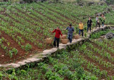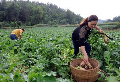 5月22日,恩施市龙凤镇大转拐村村民正在采收萝卜。 恩施市今年发展蔬菜40余万亩,其中种植萝卜过万亩。当下,春季播种的萝卜已经成熟,恩施的菜农正在抓紧采收。据了解,由于当前的菜价行情好,每斤萝卜可以卖到6毛钱,一亩萝卜毛收入可达5000多元。本报视界网 王波 摄