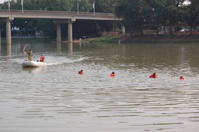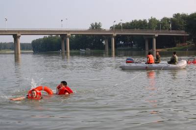 2014年5月22日,云梦消防大队消防官兵在府河云梦段进行抗洪救灾实战演练。今年主汛期临近,云梦县消防大队组织官兵在府河云梦段进行快速集结、编队开进,训练冲锋舟船外机装卸、常见故障排除、水上打捞、多功能气动救援抛投器的使用等科目的实战演练。本报视界网 陈保忠 摄