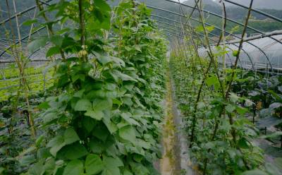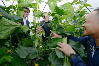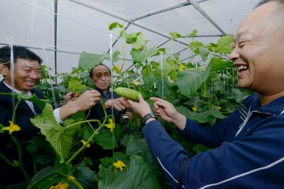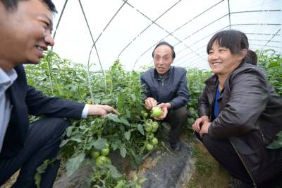 近年来,湖北省保康县不断出台相应扶持政策,引导、鼓励农民发展设施蔬菜,大力发挥农民专业合作社作用,采用滴灌、杀虫灯、粘虫板等物理技术灭虫,施用有机肥,引进以色列西红柿、荷南水果黄瓜、茄子等新品种,指导农民促进大棚蔬菜、瓜果等特色产业的发展,提升全县农业产业化水平,带动当地农民增收。目前该县种植的500亩设施蔬菜,年产量1500万公斤。同时大力实施“农超对接”,以“龙头企业+超市+专业社”的农产品现代流通模式,在超市建立农产品直销区,使蔬菜从田间地头直接进入超市,缓解农民卖菜难,也同时减轻市民的“菜篮子”负担。(本报视界网 陈泉霖 摄)