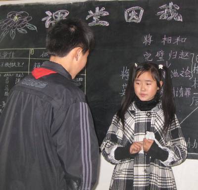 变化角色气氛活4月14日,安陆市王义贞镇中心小学五(2)班学生李双琴正在向同学们交流她学习《将相和》的收获和疑问。自3月以来,该镇以全国合作教学研究基地——山东杜郎口中学为示范,改革传统的以教师主讲,学生被动接受的教学模式,尝试真正意义的自主、合作、探究学习方式。新的教学模式实施近一个月来,学生的学习积极性得到空前发挥,课堂呈现出丰富多彩的喜人景象;看,学生争先恐后地发言、上黑板、表演课本。视界签约网摄影师:王代金(13986495112)
