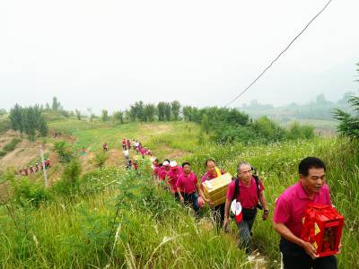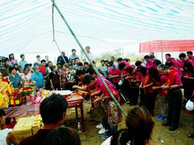 湖北省十堰市郧县农村历来有外出游子发达后,回乡祭拜先祖的习俗。虽然方式、经济实力各异,但基本上都少不了鸣炮、烧纸、吃斋念佛这些环节。2013年6月19日,台胞王连松一行52人的朝拜团,回到离别64年的故乡——郧县五峰乡肖家河村祭拜先祖。故乡父老全程观看了这次高规格的朝拜团整个祭拜过程。此次台胞朝拜团的祭拜活动,促进了两岸民间文化的交流与大融合,彼此留下极为深刻的影响。