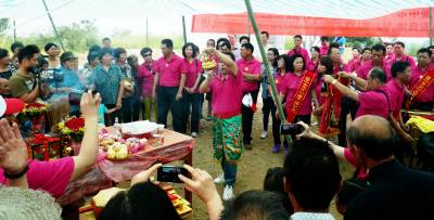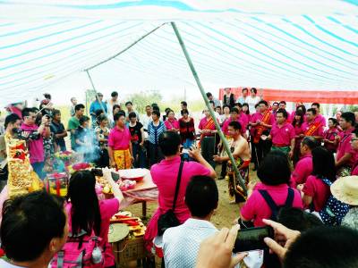 朝拜团整个祭拜过程分为祭河神、运送祭品、摆放祭品、列队准备、诵经、行祭拜礼、祭祀画符、跳神、开光、个人祭拜、合影留念等十一个步骤,持续时间约二个小时。而每个步骤都蕴含深厚的地方民俗(台湾与大陆)意味。因此,这是一次值得记取的活动。