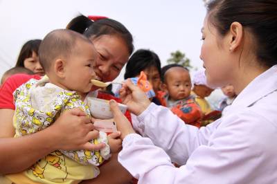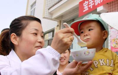 5月27日上午,竹山县宝丰镇中心卫生院医护人员在该镇铧厂村为婴幼儿家长讲解演示爱心营养包的食用方法。当日,全村36名儿童喜领营养包。据了解,“贫困地区儿童营养改善项目”是卫生部与全国妇联用中央财政专项补助经费在贫困地区实施儿童营养改善试点项目,为6—24月龄婴幼儿每天免费提供一个营养包。据悉,该县每年有9000余名6-24个月儿童受益,以预防婴幼儿营养不良和贫血。
