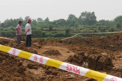 5月27日,事故现场。还有来自安陆各地市民到事发现场吊唁。事故留下的铁锹、衣服、帽子,似乎在诉说昨天悲壮的一幕。 5月26日,安陆一工地出现坍塌,1名民工被掩埋,安陆消防中队接警后迅速组织救援。3名消防队员救援中遭遇二次坍塌,被掩埋。经抢救无效壮烈牺牲。