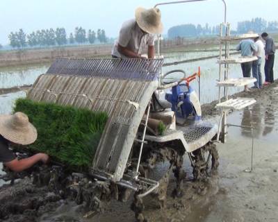 > 插秧机下田 乡亲乐呵呵