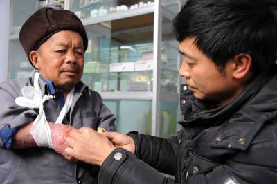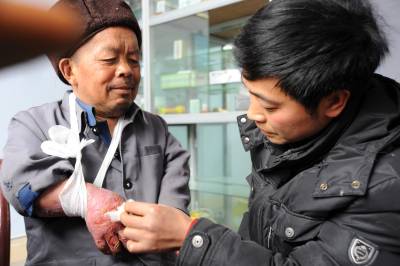建始:亲生儿女般呵护孤寡老人4月15日,建始县花坪乡中心福利院工作人员正为一位烫伤孤寡老人清洗换药。该福利院长期从为老人义务洗发、理发、钉扣、与老人谈心等细小服务抓起,像亲生儿女般呵护孤寡老人,院里一片幸福融融。本报视界网刘波通讯员吴克忠建始新闻中心刘波联系电话13032794298