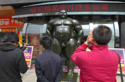 4月15日,由雕塑师杨存德、杨晴设计,历时一个多月制作完成的高度为3米的雕塑”大块头”在西湖春天前亮相展出,据介绍,这个雕塑寓意是:东方巨人的潜力,开放、奔放走向新时代的精神,以彰显东方人的张力。目的是迎接世博会的举办。 当天,刚刚亮相的”大块头”也引起了不少争议,年轻人认为符合时代精神,也有老年人认为裸体雕塑有伤风化,建议撤掉。