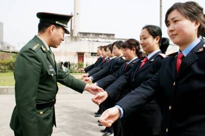 图片新闻:襄樊火车站在客运人员中开展军训活动