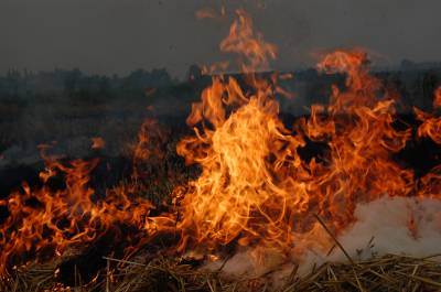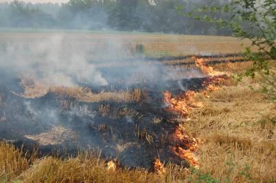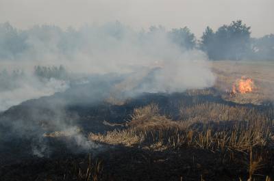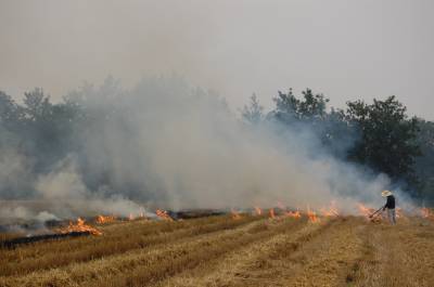 2014年5月28日,府河云梦段大堤西边,收割后的小麦秸秆在田间被焚烧,火光冲天,烟雾缭绕,铺天盖地。几十亩遍地麦秆,被同时点燃焚烧,熊熊大火,遍地草木灰。