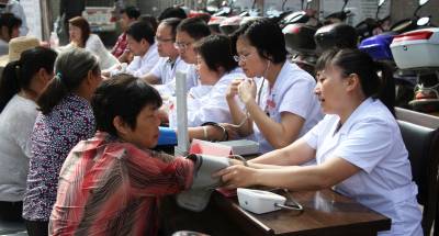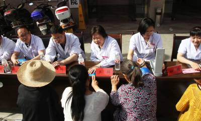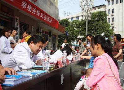 5月29日,竹溪县计生协会专家为市民免费体检。5月29日是中国计生协成立34周年纪念日,也是全国计生协第16个“会员活动日”,当日,竹溪县卫计局组织计生协会专家开展“幸福关爱”义诊活动,为市民提供免费体检、健康咨询、发放计生用品、宣传计生政策等,用温暖的关爱为市民健康、幸福保驾护航。(本报视界网颜义众汪敏摄)