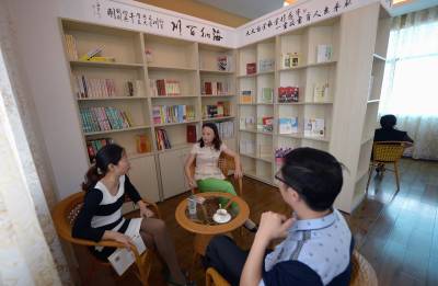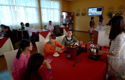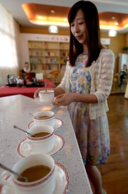 5月29日,教师们在宣恩县椒园中学教师“课间咖啡屋”里品茶喝咖啡。