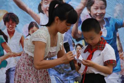 5月29日,是安陆市王义贞镇花园小学二年级孙悦最高兴的一天。她不仅收到了叔叔、阿姨们送来的崭新书包、童话书籍、节日蛋糕等诸多礼物,还现场与远在广东打工的爸爸妈妈通了电话。当日,王义贞镇“情暖六一留守儿童关怀行动”在该校举行,该校314名“留守”儿童分别收到了众多叔叔、阿姨们送来的书包、书籍、衣服、鞋子、节日蛋糕、慰问款等物品和款项,使这些山乡“留守”感到社会各界的关心和关爱。 (本报视界网:王代金 摄影 电话13986495112)
