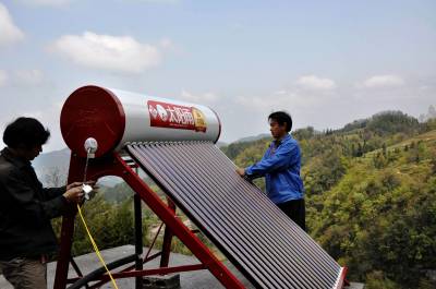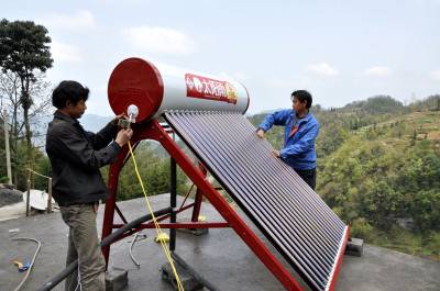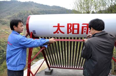 4月15日,笔者在恩施市红土乡红土溪村茅田组村民徐申界家看到,工人正在安装太阳能热水器。据悉,该市在正确引领农民过上低碳生活的过程中,首先解决好农村能源的使用问题,积极倡导节能环保意识,认真落实家电下乡优惠政策,鼓励农民使用太阳能热水器,真正唱响了”四季沐歌”。(视界网签约摄影师彭绍峰摄)红土乡政府13329820218