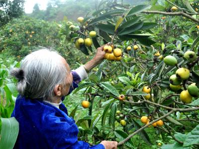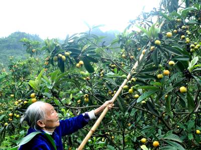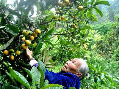 端午枇杷俏 6月1日,来凤县革勒车镇77岁的田子云老人,在端午节头天为外地客人采摘五星枇杷。五星枇杷是该镇岩板村村民增收的品牌经济之一,目前全村连片成块面积达500亩。今年前期虽然雨水较多,但枇杷产量仍然高于去年,市场价每公斤达10—12元。端午节前后,湖南、重庆及周边县市的不少客商便提前订购或亲自林中采摘,枇杷收入今年有望突破50万元大关。 本报视界网 姚丙然 来凤县革勒车镇文化服务中心 电话:13997799385