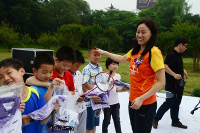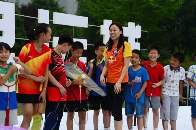 2014年6月1日,从湖北宜昌走出去的奥运会羽毛球冠军赵芸蕾,应某地产楼盘之约,回到家乡,和家乡爱好羽毛球运动的少年儿童共度六一。她赠送了10名少儿运动衣和球拍,并和他们一道互动,演练羽毛球技。