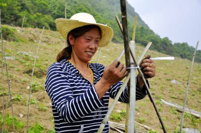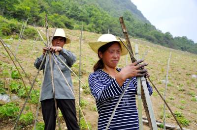 “家庭农场”劳作忙 6月3日,在恩施市红土乡红土溪村茅田组,“家庭农场”职工正在荆豆地里忙搭架子。 近年来,该乡马正斌“家庭农场”通过土地流转、承包等形式,实行长短结合,短期种植反季节荆豆、甜弯豆等经济价值较高的经济作物,长期栽培了核桃、漆树等经济林木。(视界网彭绍峰摄)
