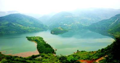 6月3日,在竹山上庸镇吉鱼村偶遇一景,有如龟蛇嬉戏之状。原来,在库区未淹没前,一大片农田绕山而建,山水环绕,形成了一个天然的太极图象。如今,留在水面上的山脊有如龟蛇相戏之状。