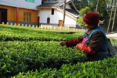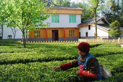 温馨家园4月15日,恩施市白杨坪乡熊家岩村70岁的李老太正在自家院门外茶园里摘茶。老人告诉笔者:现在家乡搞新农村建设,家里栽种了优质速生茶,儿子媳妇也就在周边打工,农忙时能抽空回家帮帮忙。眼下春茶价钱好,自己就在院子里每天也能摘上三四斤,收入七八十元。和煦的阳光照耀着别具特色的家园,年迈的老人在茶园里悠闲地摘茶,好一幅温馨家园图。