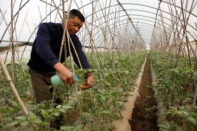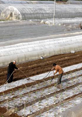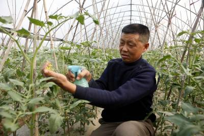 宜昌万亩放心菜弥补市场春淡缺口2010年4月15日,一菜农在蔬菜大棚喷施生物蕾肥。湖北省宜昌市根据市场需求,大力推广四早蔬菜作物,组织菜农种植精细速生蔬菜,弥补菜蓝子春淡市场缺口,农技部门驻进菜地推广普及生物有机肥和无公害农药,保证蔬菜安全高效。文振效