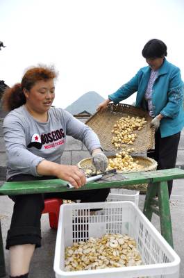 贝母迎丰收 6月4日,在恩施市红土乡石窑农贸市场上,种植大户黄金梅正在加工收购来的中药材贝母。 贝母是该乡的中药材产业的主导产品。近几年,随着全国中药材价格行情不断回升,贝母的价格也一路攀升。根据今年市场行情,贝母收购价达每公斤42元,较去年上涨14元。药农们抓住时机扩大种植面积,科学管理,使贝母获得好收成。(视界网彭绍峰摄)