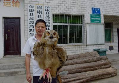 当日,保康县过渡湾林站工作人员,在林站附近发现一只翅膀被夹伤的短耳鸮(猫头鹰),工作人员对其进行包扎救治后将它放归自然。