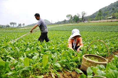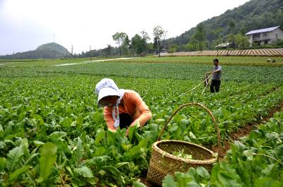 错时种萝卜销售有订单 6月4日,在恩施市红土乡石灰窑村反季节蔬菜种植基地,菜农正在忙着早季白萝卜的田间管理。 近几年来, 该乡石灰窑蔬菜专业村,充分发挥土壤全是黄泥土质,种出来的萝卜特别甜、特别脆,外地客商都主动找上门签单定购,负责统一供种、按市价回收。该村共有400多户村民种植早季萝卜,种植面积1万多亩,长势喜人,丰收在望。(视界网彭绍峰摄)