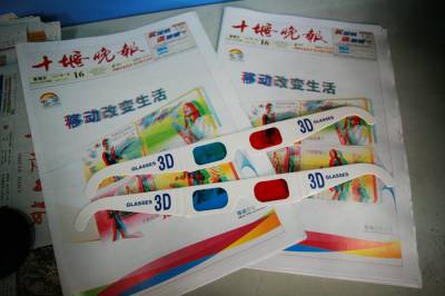 4月16日,全国首家3D报纸在十堰上市,一份报纸搭配上一幅眼镜,会有什么样的神秘效果了?